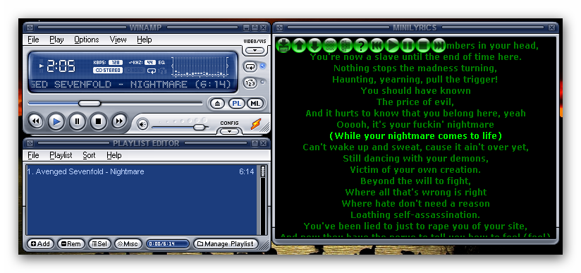 Biasanya Minilyrics hanya membaca judul dari sebuah file MP3 , oleh sebab itu Judul Lagu tersebut tidak boleh ada embel2 lain, maksud nya kalau Judul lagunya Avenged Sevenfold – Nightmare jangan ditambahin jadi Avenged Sevenfold – Nightmare Official Music Video5.Sekarang Winamp anda sudah dapat digunakan untuk menampilkan lirik lagu yang sedang dimainkan di winamp.